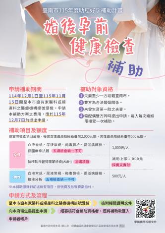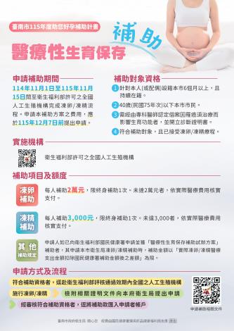 二、「臺南市115年度助您好孕補助計畫」已公告於本市衛生局網站(網址:https://p.tainan.gov.tw/wQz1q)。